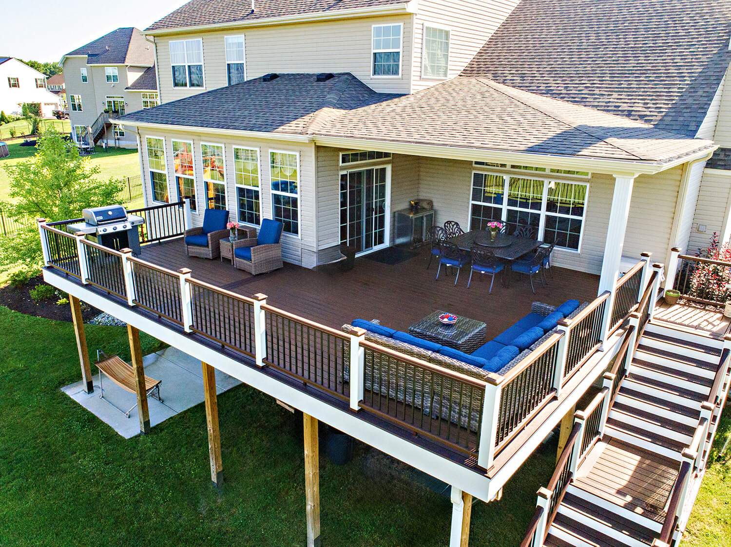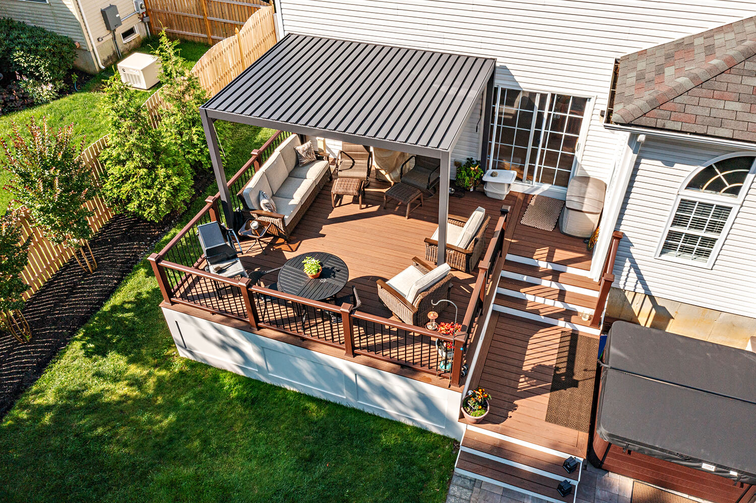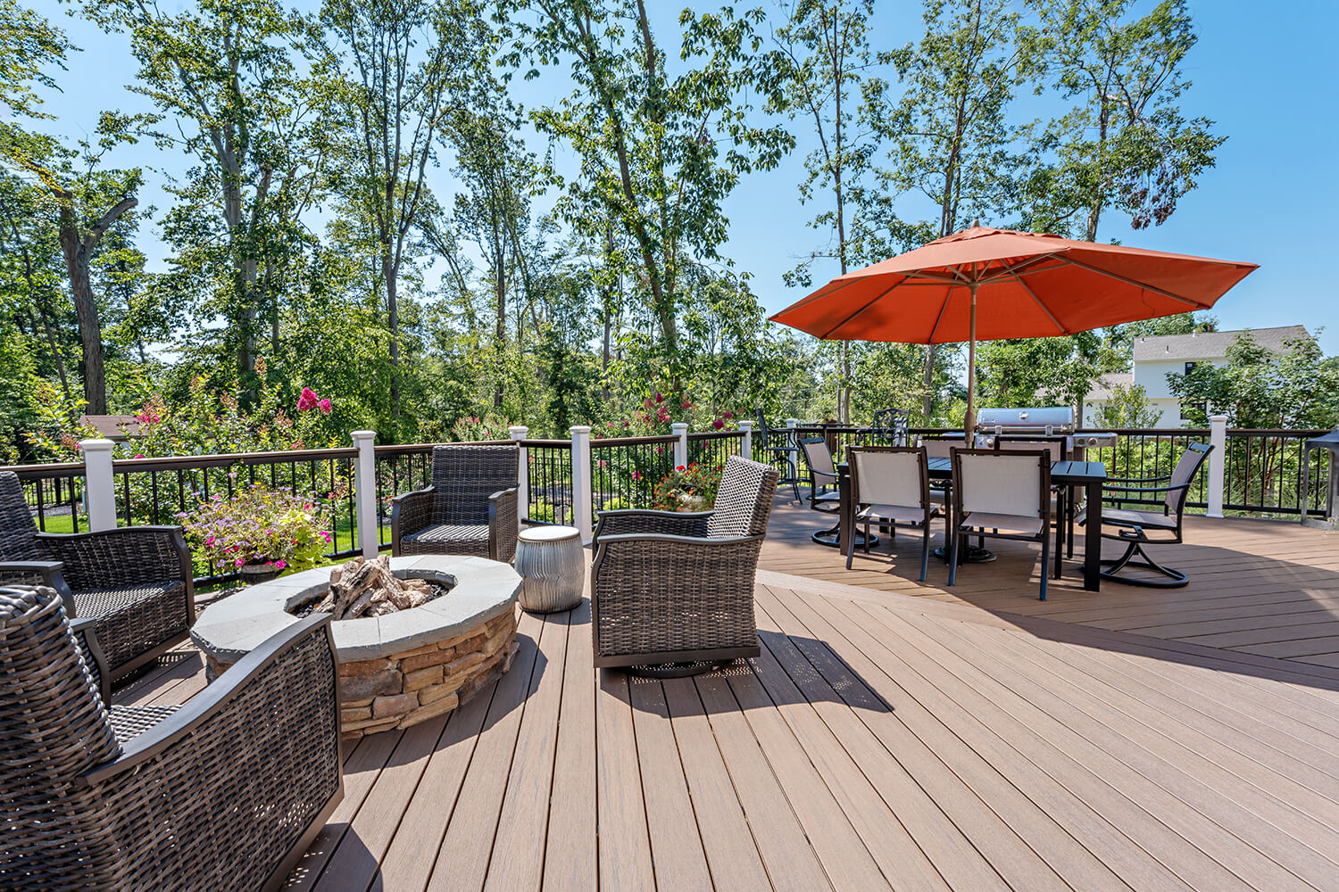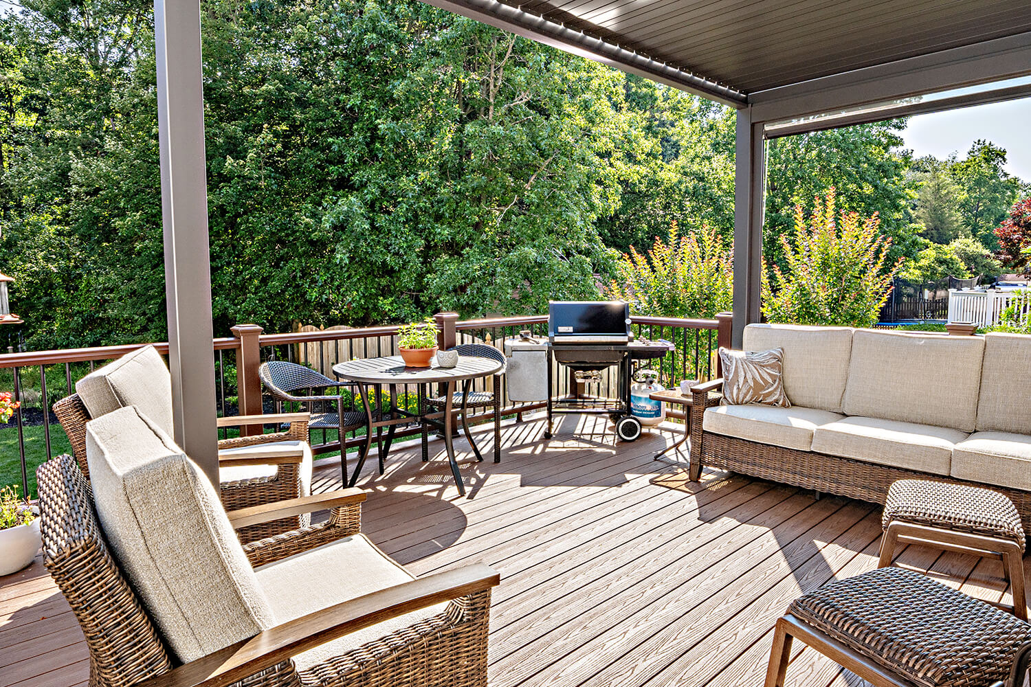 Custom decks are an outdoor extension of your living space — designed to enhance the way you live outdoors. Using premium, low-maintenance materials and multi-level layouts, we create spaces that are ideal for entertaining, relaxing, and making the most of every season. Explore some of our favorite projects and get inspired for your own backyard transformation.